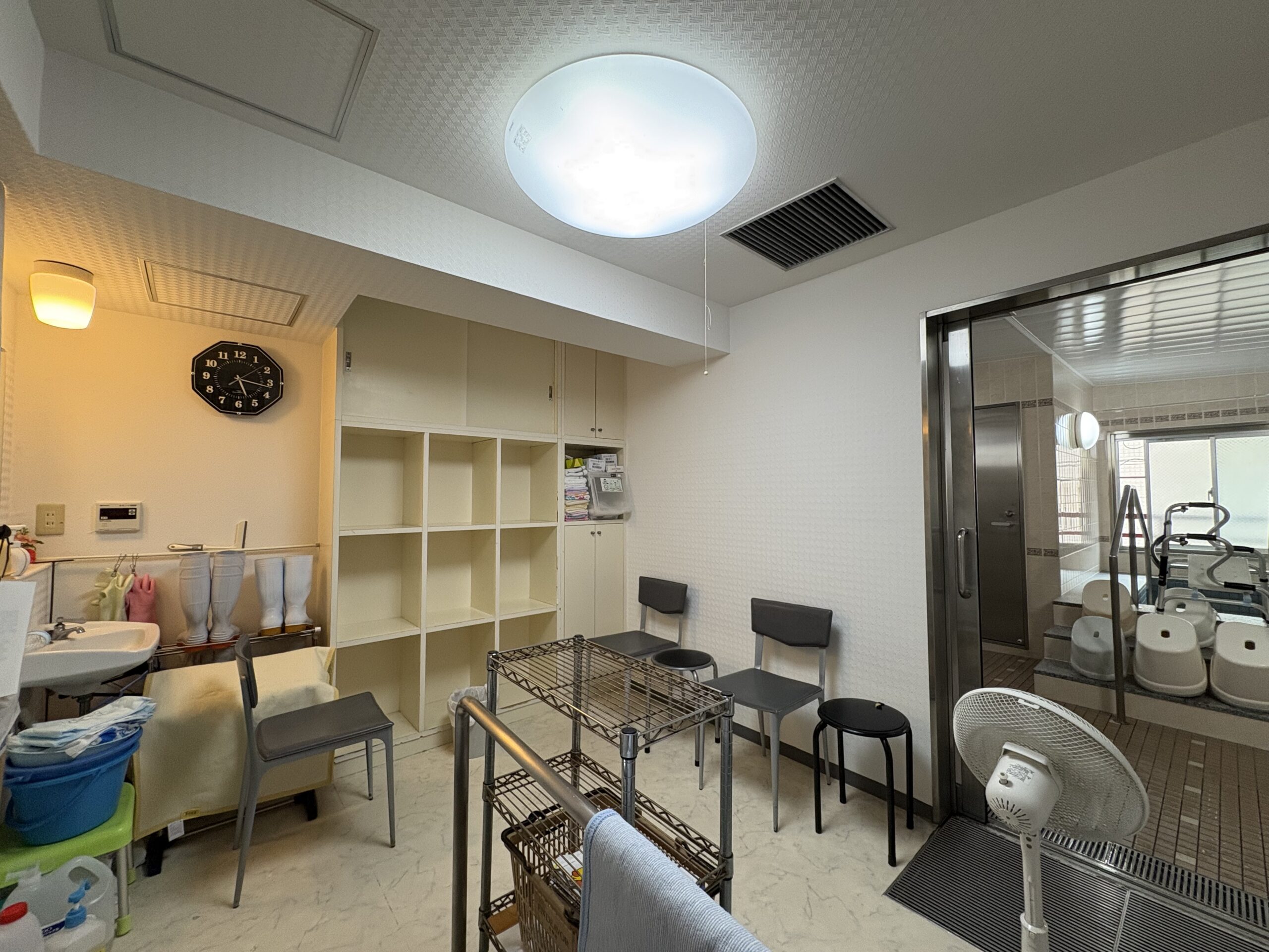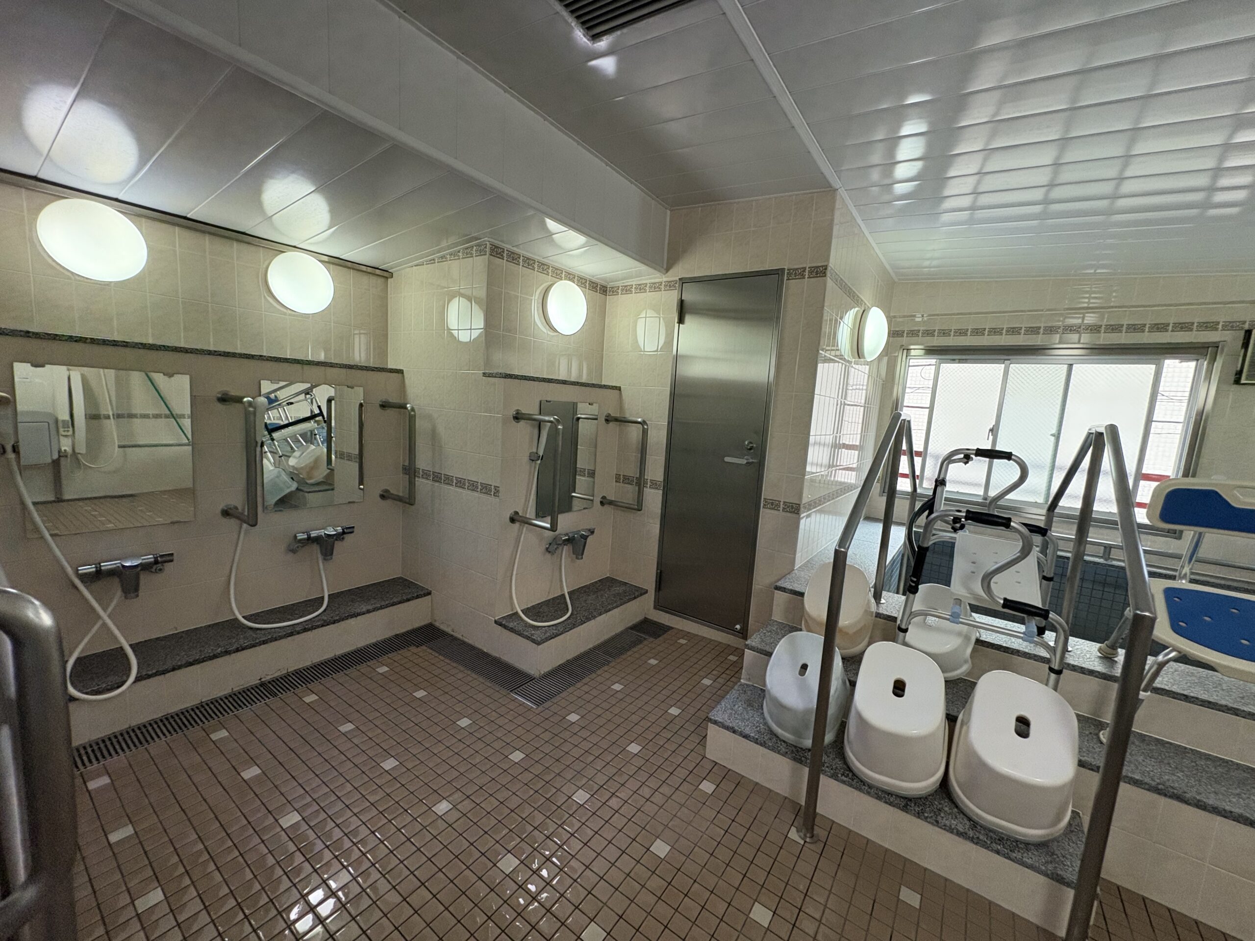 歩けない場合には、職員が介助しますし、昇降機もついています。