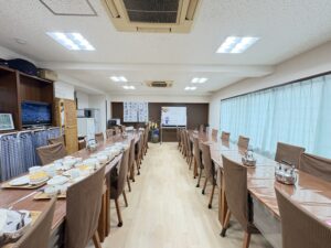 皆さんで食事をする場所です。お部屋で食事をすることもできます。