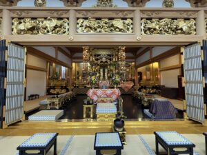 お隣には真宗大谷派受念寺があります。お参りしていただくことができます。定例行事や定例法話もあります。