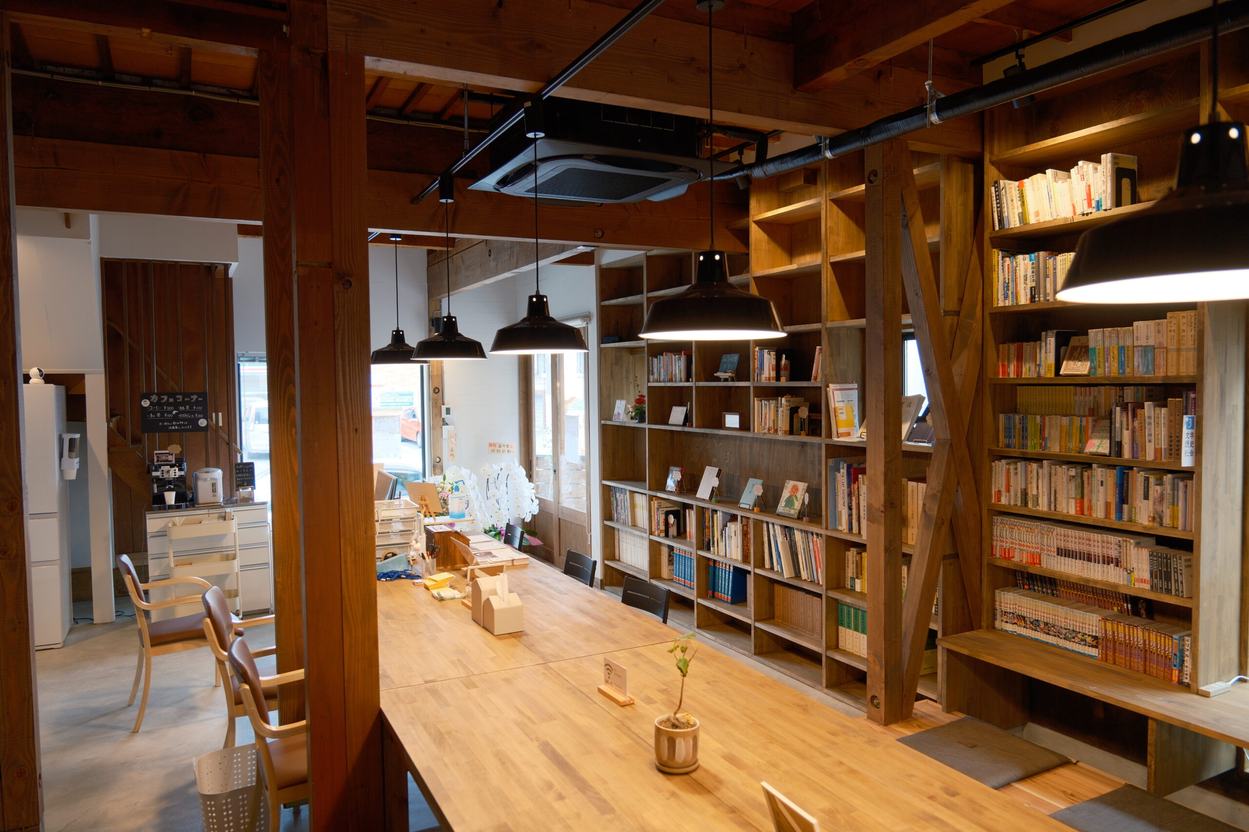 受念館創始者の自宅を改装し、私設図書館がお隣にあります。入居者の皆さまもご利用しやすくなっております。お飲み物を飲みながらゆっくり本をよんだり、他の来館者と交流の場になったり。癒やしの空間です。